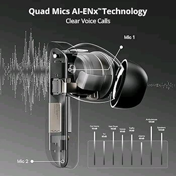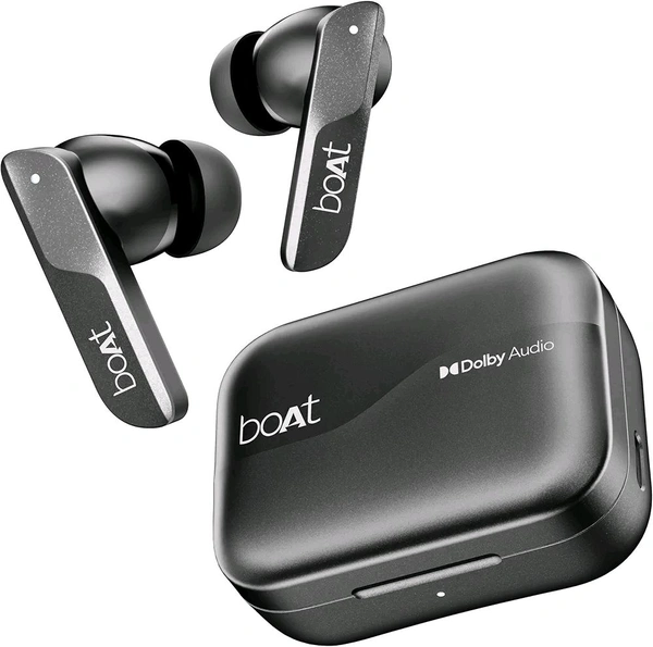 boAt Airdopes 800, Dolby Audio, Adaptive EQ by Mimi, 4Mics AI ENx, App Support, Fast Charge, Low Latency, IPX5, v5.3 Bluetooth TWS in Ear Earbuds Wireless Earphones with mic (Interstellar Black)
