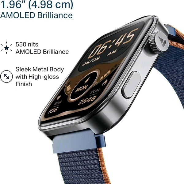 Boat Chrome Endeavour, 1.96” (4.97 cm) AMOLED Display, AI Coach Health Insights, Advanced S1 Processor, Auto Heart Rate, HRV, VO2 Max, Stress, TBT, IP68, Smart Watch for Men & Women (Fusian Blue)