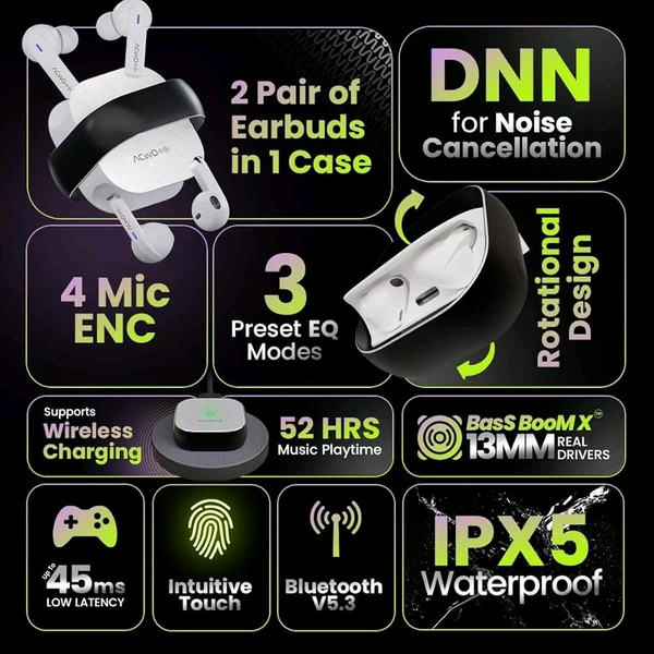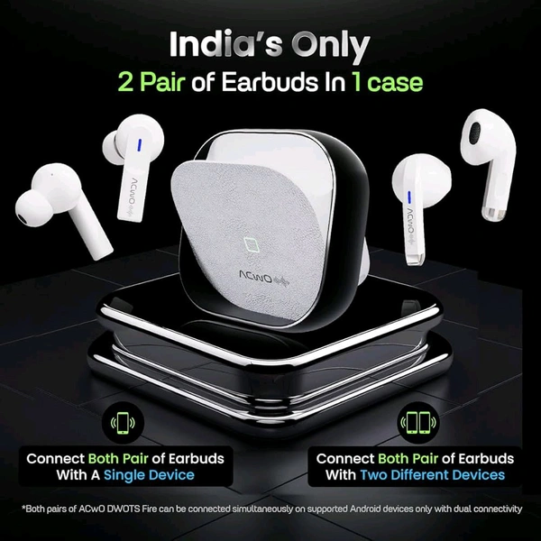 ACwO DwOTS Fire India's First in-Ear + Half-in-in Ear Earbuds in one case, 3+3 EQ Modes, Wireless Charging Enabled, AI-ENC with Quad Mic (Cosmic Black)