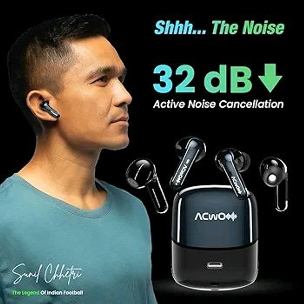 ACwO DwOTS Fire India's First in-Ear + Half-in-in Ear Earbuds in one case, 3+3 EQ Modes, Wireless Charging Enabled, AI-ENC with Quad Mic (Cosmic Black)