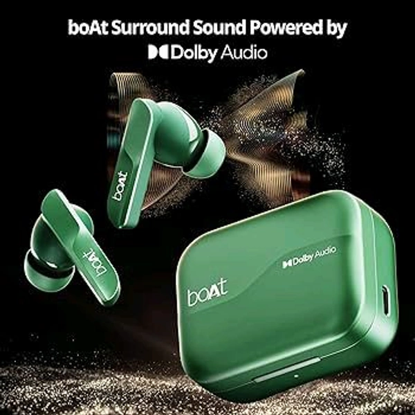 boAt Airdopes 800, Dolby Audio, Adaptive EQ by Mimi, 4Mics AI ENx, App Support, Fast Charge, Low Latency, IPX5, v5.3 Bluetooth TWS in Ear Earbuds Wireless Earphones with mic (Interstellar Green)