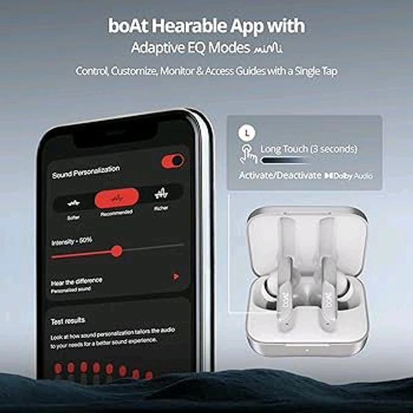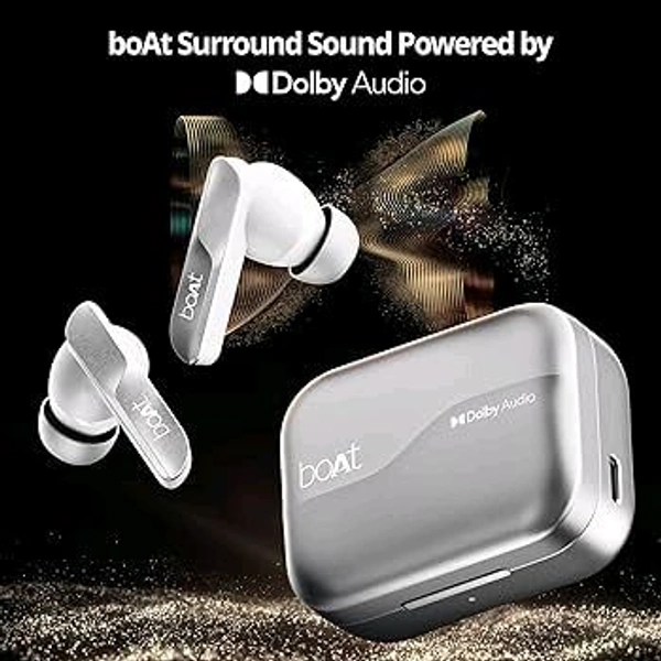 boAt Airdopes 800, Dolby Audio, Adaptive EQ by Mimi, 4Mics AI ENx, App Support, Fast Charge, Low Latency, IPX5, v5.3 Bluetooth TWS in Ear Earbuds Wireless Earphones with mic (Interstellar White)