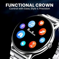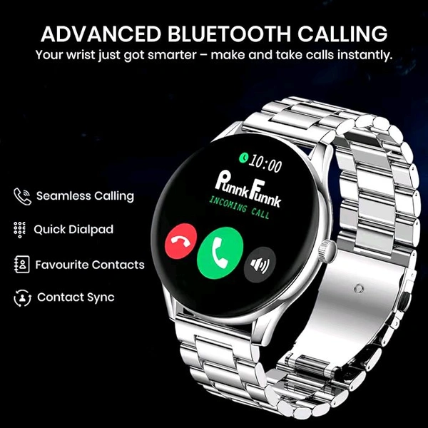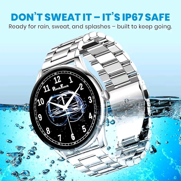 PunnkFunnk Glavito Round Dial Smartwatch 1.49" AMOLED Display, Bluetooth Calling, Functional Crown Control, 100+ Sports Modes, IP67, Health Tracking, 100+ Watch Faces for Men & Women (Metal Silver)