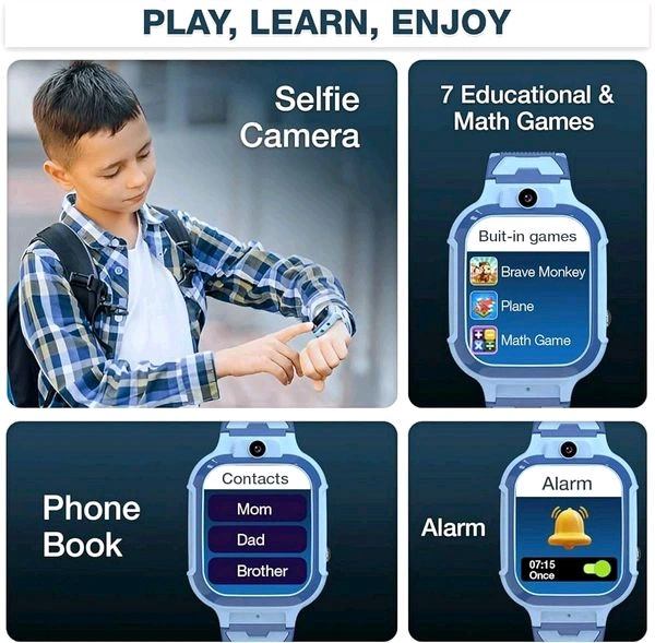 - ✅ [Learning with Entertainment] – Loaded with 7 educational & math games, selfie camera, alarm, and phone book, this kids smart watch for boys combines fun with safety.