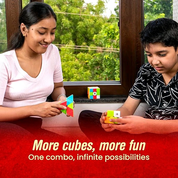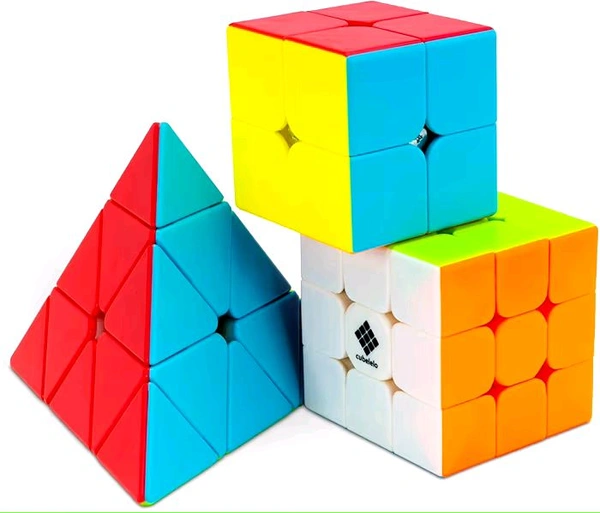 Cubelelo Drift 2x2, 3x3 & Pyraminx Cube Combo (Stickerless) | Ideal for Kids Above 3 4 5 6 Years Old Boys Girls | 3 in 1 Speedcube Gift Set | High Speed Puzzle 3x3x3 2x2x2 Pyramid Triangle
