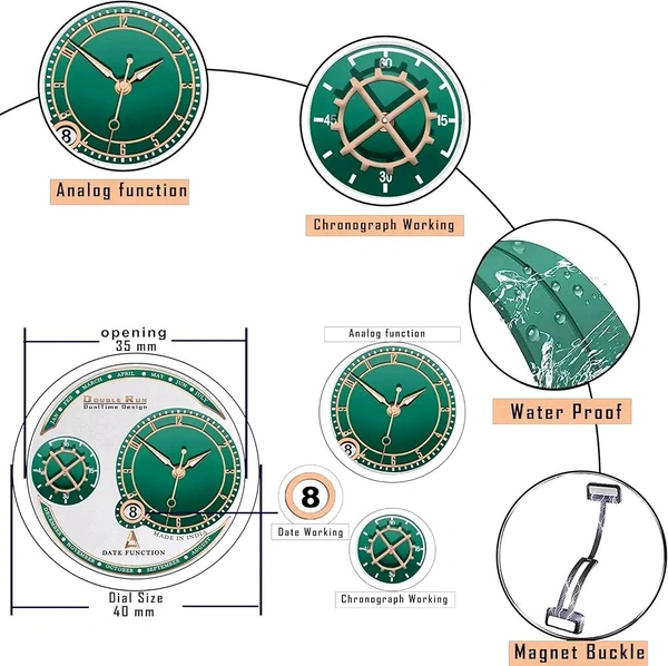 DOUBLERUN Chonograph Date Display Analoge Silicone Magnetic Belt Watch for Men, Series C-170-00