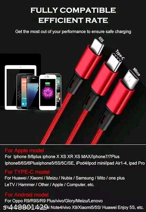 DUAL Fast Charger 3.1 cable, Mico, Types-c , i-phone
