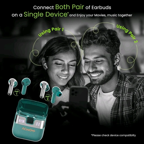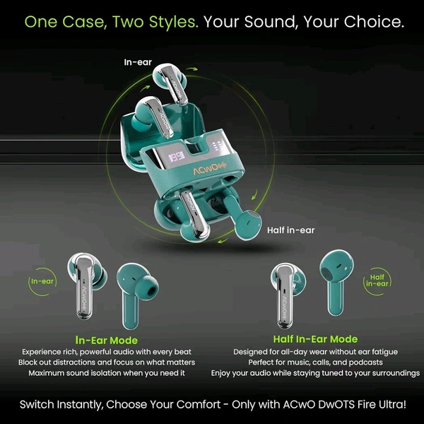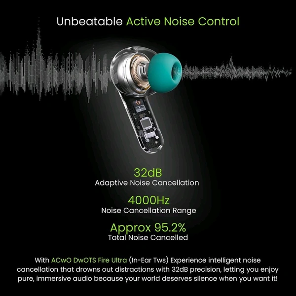 DwOTS Fire Ultra | 75Hrs Playtime | Quad Mics with ANC | 40ms Low Latency | Trans ANC Mode | Dual Sharing & Individual Connectivity | LED Battery Display | Voice Assistant Integration - Aqua Teal