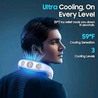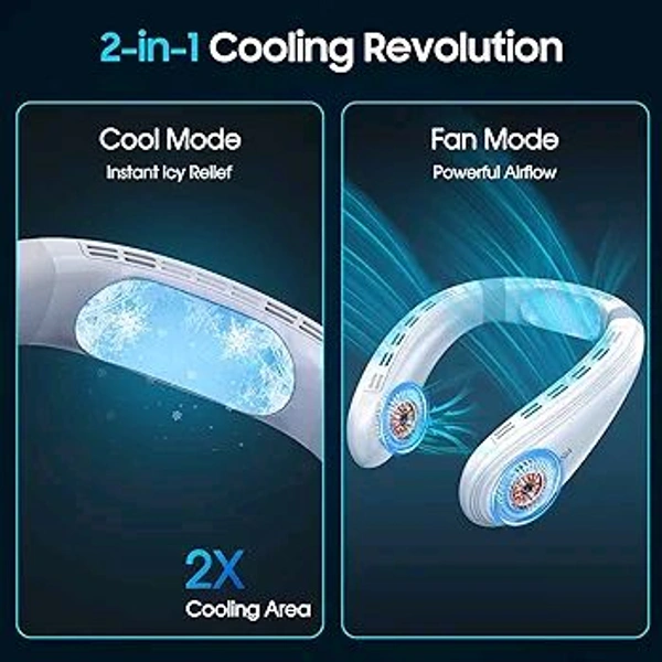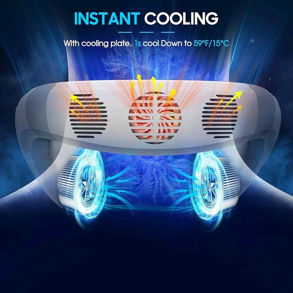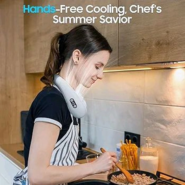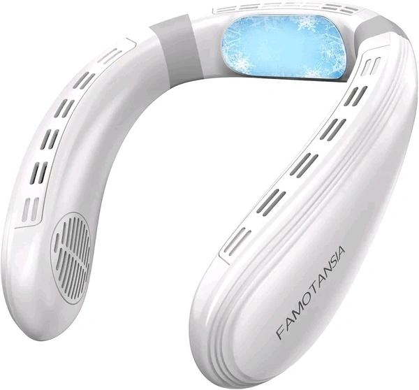 FAMOTANSIA Neck Cooling Fan, Air Conditioner Neck Fan with Cooling Plate 4400mAh Rechargeable Battery Operated, Wearable Personal Fan, Ergonomic Design, White