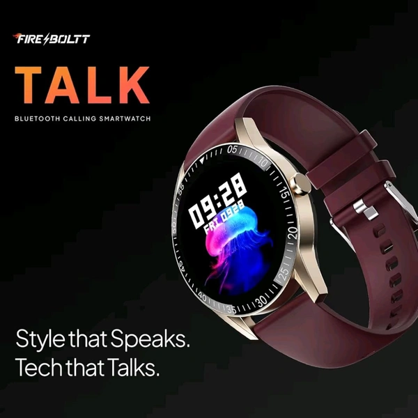 Fire-Boltt Talk Round Smart Watch 1.39″ TFT Display with Bluetooth Calling, Dual Button, Voice Assistance, SPO₂ & Heart Rate Monitor, 120+ Sports Modes, Smartwatch for Men & Women - Wine
