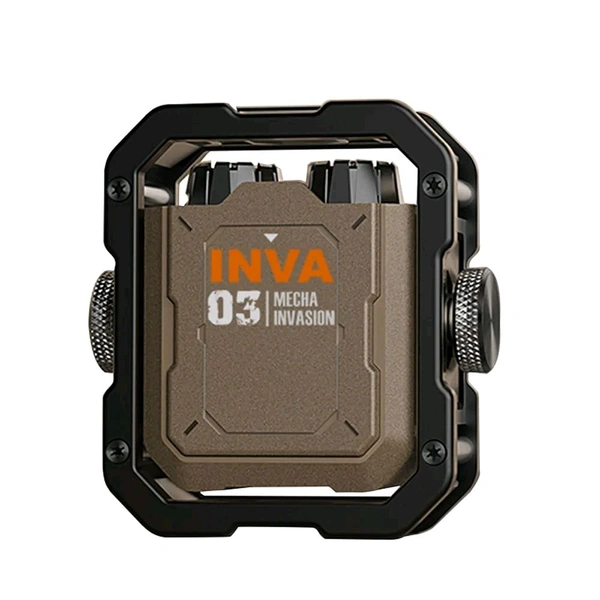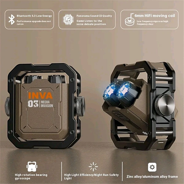 Mechanical Invasion INVA-S Mecha Wireless Bluetooth Headset, Jetpack Trendy Dazzle, Bluetooth 5.3, RGB Light Effect, in-Ear, for iOS or Android, for Running Sports (Coffee)