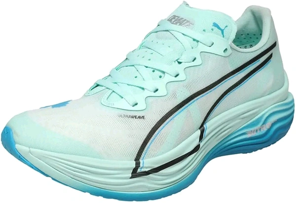 PRODUCT STORY : Hit turbo speed. The Deviate NITRO™ Elite 3 is a running shoe redesigned for lightweight, race day propulsion. A carbon fibre PWRPLATE ensures stability and maximum running efficiency, while NITROFOAM™ ELITE offers supreme cushioning that won't weigh you down. It's a running go-to made with lightweight mono-mesh and durable PUMAGRIP rubber for multi-surface traction and an effortless run. FEATURES & BENEFITS : NITROFOAM™ ELITE: Premium performance foam technology that provides pinnacle responsiveness in an extremely lightweight package, PWRPLATE: Carbon fibre plate engineered to stabilise the midsole while maximising energy transfer, ULTRAWEAVE: Ultra-light, engineered fabric with a structured, 4-way stretch that reduces weight and friction. Built for athletes looking to increase speed and strength. DETAILS : Regular fit, ULTRAWEAVE upper, Stack height: 40mm/32mm​, Weight: 194g (size UK8)​, Heel-to-toe drop: 8mm​, Recommended for: neutral pronators.