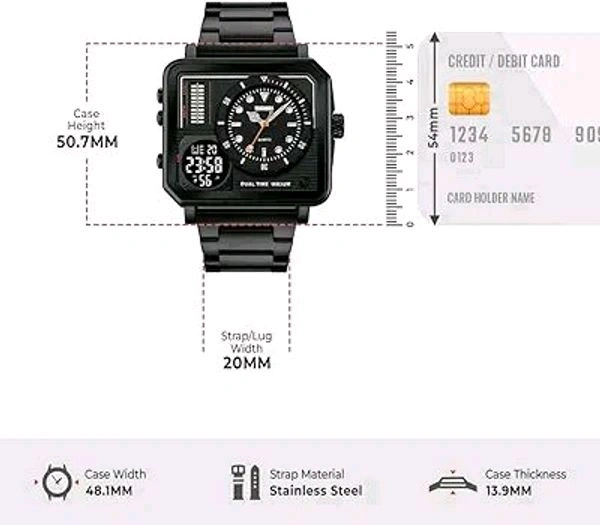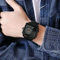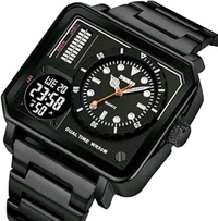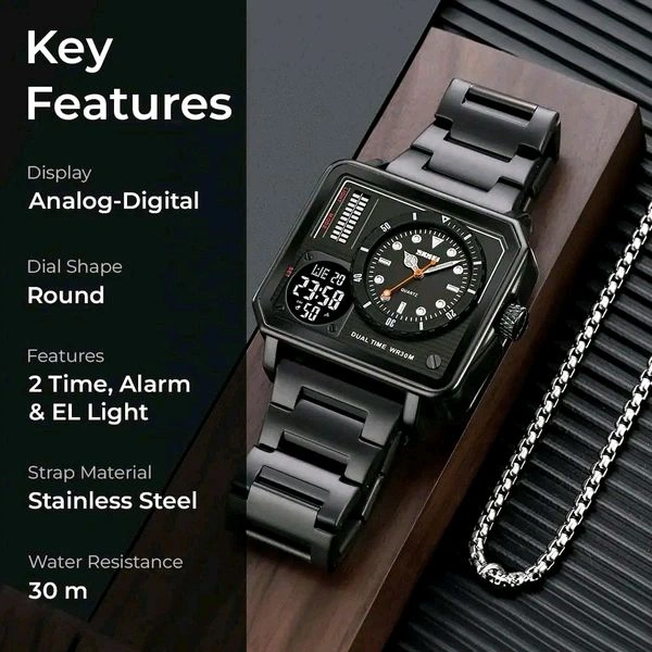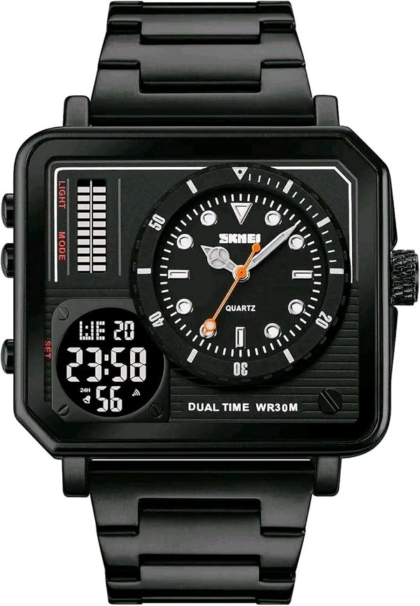 SKMEI Square Men's Watch - LED Backlight Large Screen Multi-Time Zone, Waterproof Analog Digital Sports Watch - 2025