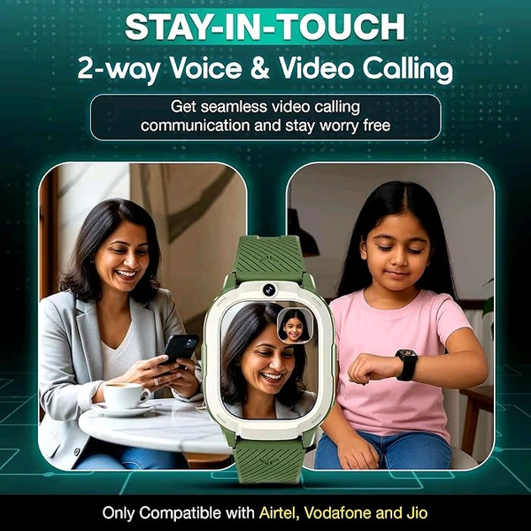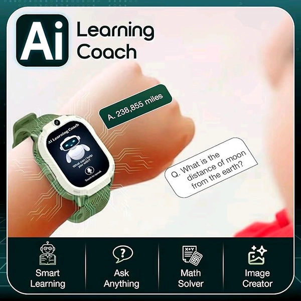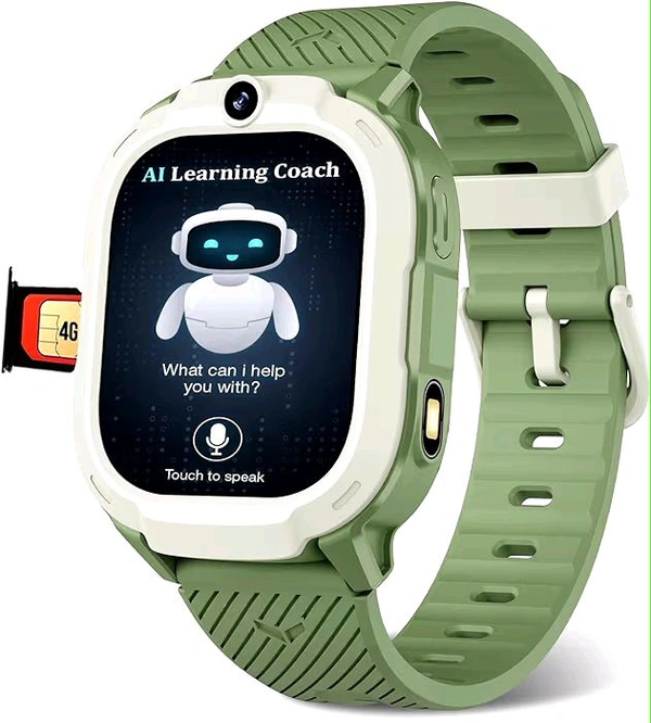 Sekyo 'Neo Fit' 4G Smart Watch for Kids | AI Learning Coach, Whatsapp, Video Calling, GPS Tracker, Health Monitoring, Habit Coach| Edu-Games, Step Count, Camera, SOS, Geo Fence, Sim Card |Parental App - Green