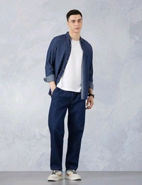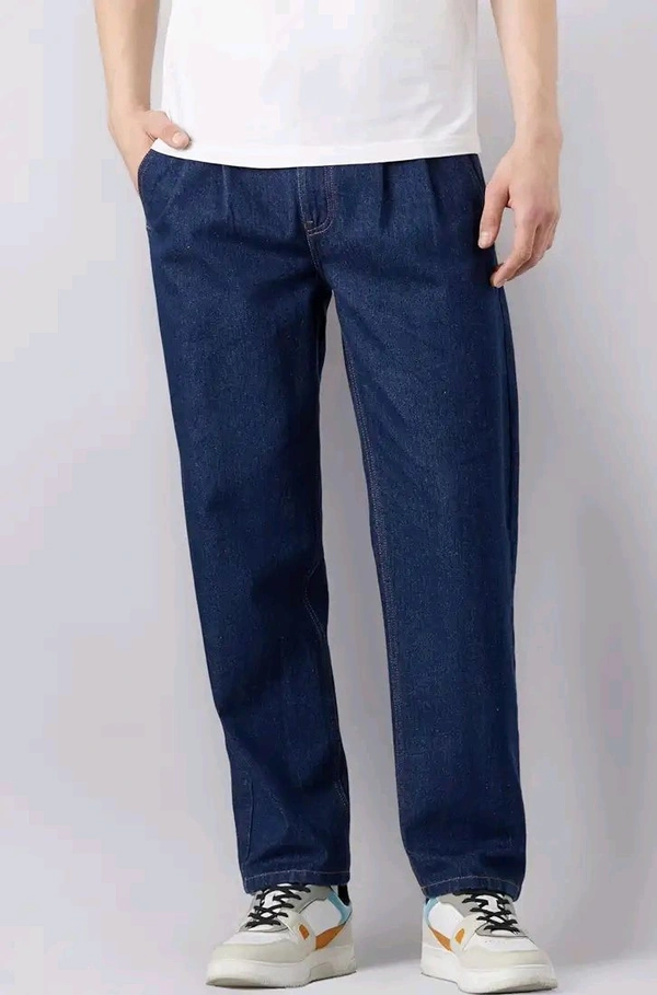 Men's Pleated Baggy Fit Cotton Jeans | Mid Rise | Loose & Relaxed | Oversized Jeans Pant