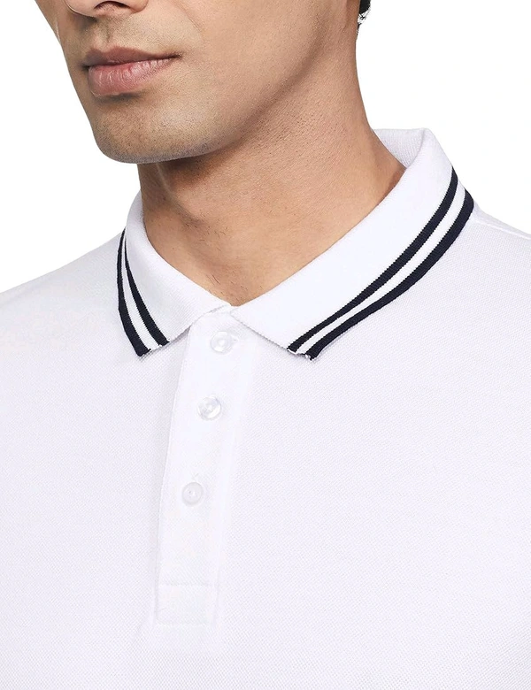 - PRODUCT DETAILS: Regular fit, featuring a ribbed knit collar and cuff with contrast tipping, 2 -button placket, half sleeves and side slits for movement.