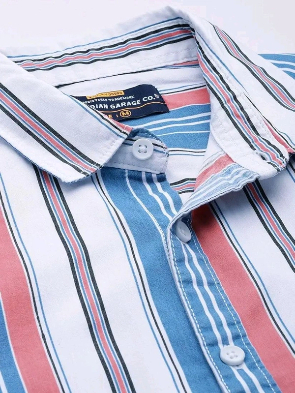 The Indian Garage Co Men's Cotton Regular Fit Striped Full Sleeves Cutaway Collar Casual Shirt