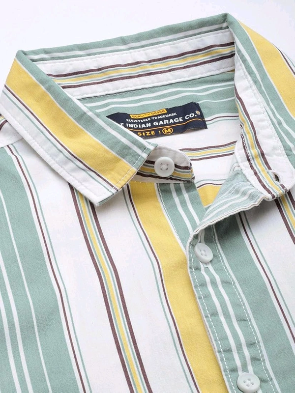 The Indian Garage Co Men's Cotton Regular Fit Striped Full Sleeves Cutaway Collar Casual Shirt