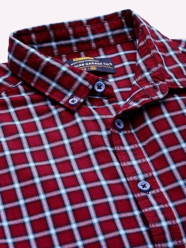 The Indian Garage Co Men's Cotton Slim Fit Checkered Full Sleeves Cutaway Collar Casual Shirt
