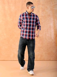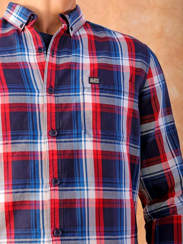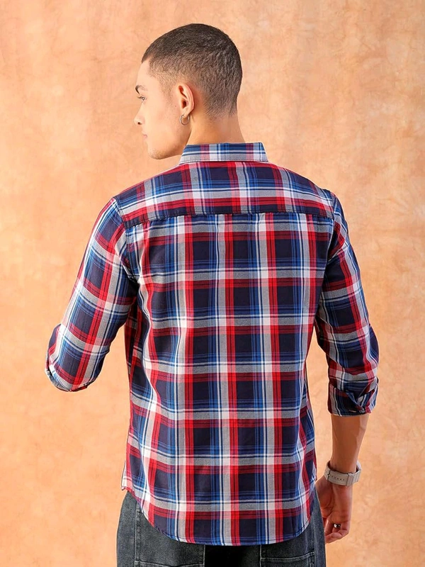 The Indian Garage Co Men's Cotton Slim Fit Checkered Full Sleeves Cutaway Collar Casual Shirt