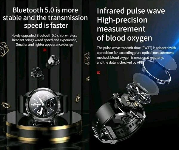 - ❤️ JM03 2 in 1 Smart Watch and Bluetooth 5.0 headphone: One device Two functions, New experience of smart wearable devices.
