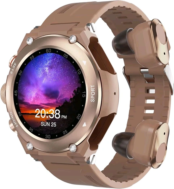 Tuanzi T92 Smart Watch with Earbuds MP3 Bluetooth Headset 3 in 1 1.28 Inch Smartwatch Built-in Wireless Earbuds Speaker Round Fitness Tracker Music Health Monitor (Coffee)