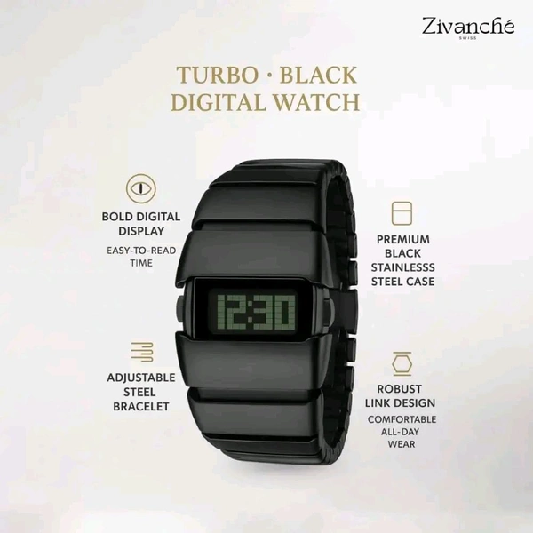 The Turbo Black Men’s Luxury Digital Watch is designed for those who value speed, style, and precision. With a bold black dial, sporty design, and durable build, this watch combines modern digital features with a sleek finish. Perfect for daily wear, workouts, and casual fashion, it is a statement timepiece for men who live life in the fast lane.